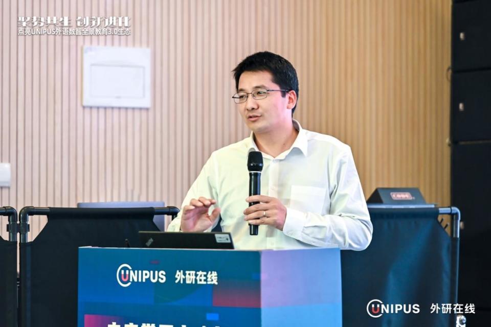商其坤先生围绕“数字智慧赋能高校教育变革”进行发言。他表示,外研在线作为外语教学与研究出版社数字化转型升级的核心载体,依托深厚学术资源、先进数字技术及丰富教育经验三重优势,全面深化教育数字化战略,全面发力内容、工具、场景、服务及生态,形成集“平台、系统、硬件、服务”为一体、涵盖全学龄段的综合数字化解决方案。他表示,在数字时代背景下,新文科工程训练已成为重大的时代课题。外研在线紧跟时代步伐,在新文科实践探索的关键阶段深度参与新文科工程训练课题,对课题从定义、构建到产出阶段进行全方位支持。他表示,未来外研在线将持续深度参与到课题中,与更多专家推进课题的建设和牵引转化,促进新文科融合创新发展,助推高等教育强国建设。